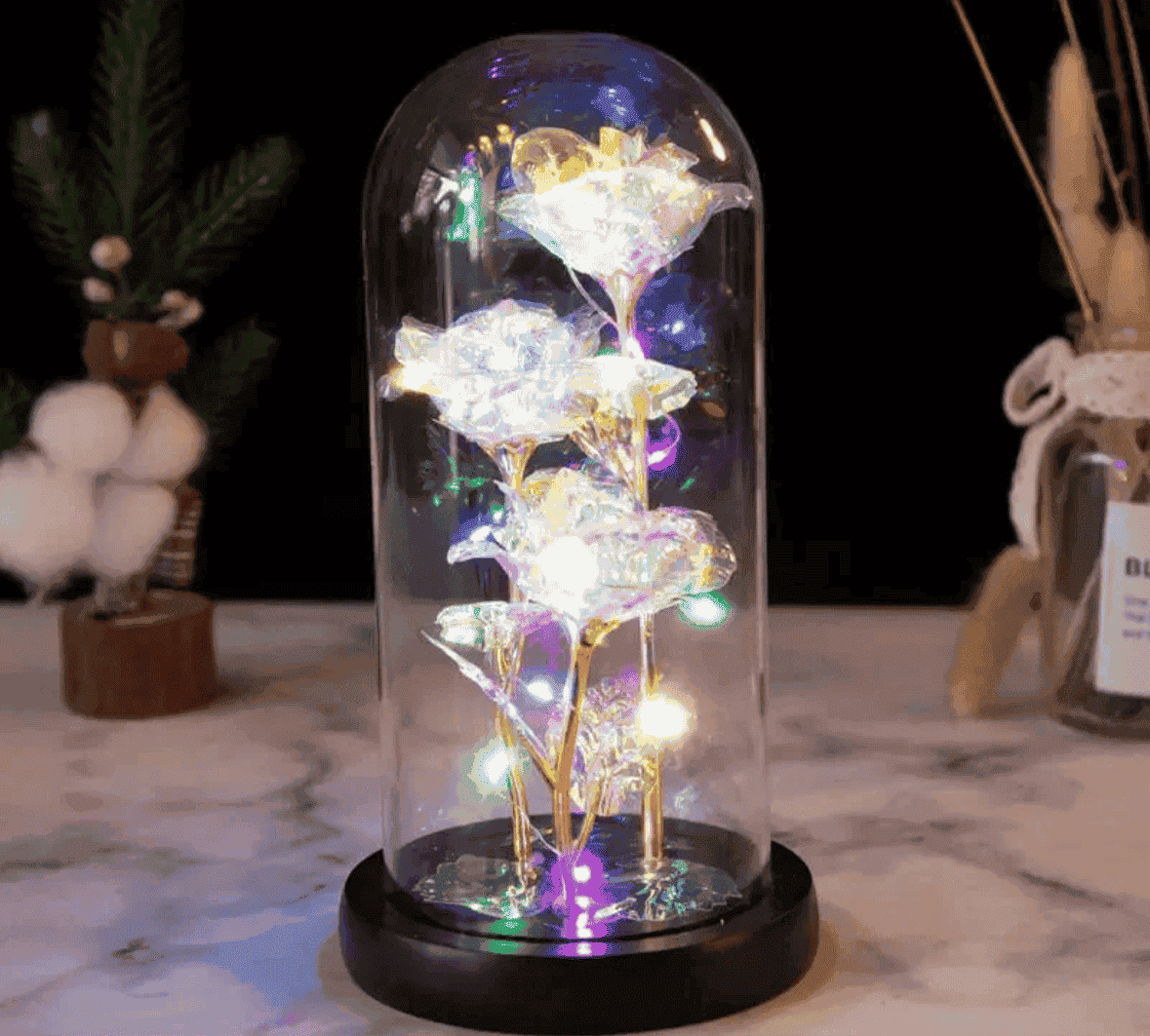 ارتفع TikTok الفيروسي! هذه الوردة السحرية سوف تستمر إلى الأبد! مصنوعة من بتلات الألياف الزجاجية ذات الجودة العالية المغلفة بإضاءة LED ملونة داخل قارورة زجاجية.